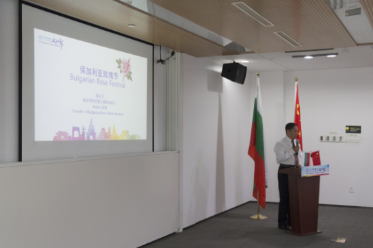 Wang Nanming, Hu Jiaxiang--professor of Koguan School of Law, Zhao Yiwei from Bulgarias Pavilion, and Chen Qiwen -- general manager of Bulgarian Rose Theme Pavilion made their speech respectively entitled From Tradition To Contemporary -- Shanghai Himalayas Museum's "Landscape Society" Exhibition, From Special Economic Zone to Free Trade Zone--not Only the Change of Name, Bulgaria through Chinese Eyes, and Bulgarian Rose Festival, conducting exchanges in the fields like art, economy and humanity between China and Bulgaria. On the site, Bulgarian rose red wine was also offered to the guests for tasting, experiencing first-hand a bite of Bulgaria.