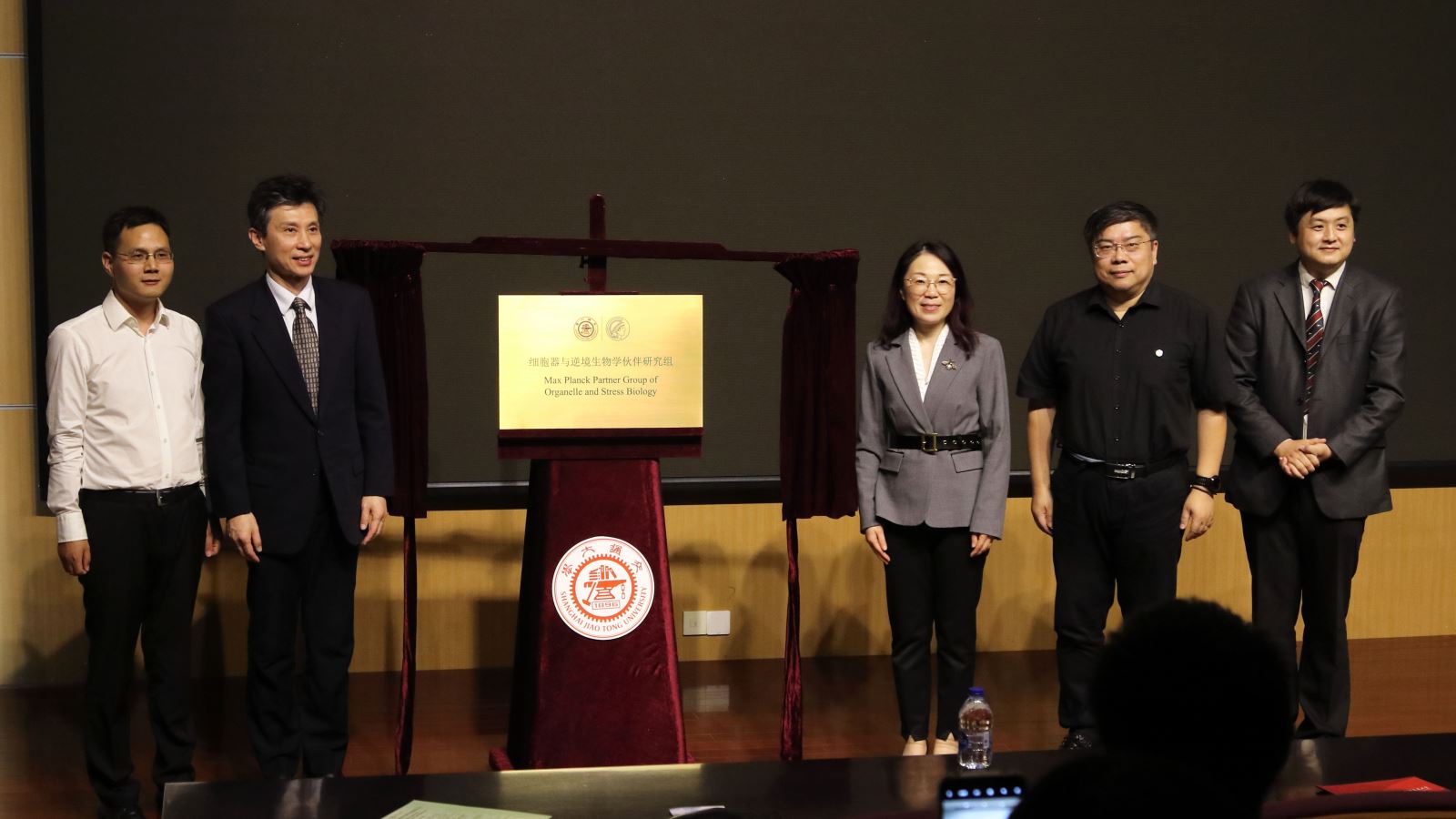 On 7th November, the International Symposium on Organelle and Stress Biology, co-hosted by School of Agriculture and Biology (SAB) at Shanghai Jiao Tong University (SJTU), the Partner Group on Organelle and Stress Biology (SAB) of SJTU, and the Chinese Society for Plant Biology, was successfully held at SAB, SJTU on site and at online platform Zoom. More than 500 scholars from home and abroad took part in the Symposium online, and more than 150 teachers and students from all over the country participated on site. Meanwhile the Max Planck Partner Group on Organelle and Stress Biology was also officially launched. Prof. Xue-Min Xu, Vice President of SJTU, Ms. Shang-Yan He, Director of the International Cooperation Division of the Science and Technology Commission of Shanghai Municipality (STCSM), and Prof. Hong-Wei Xue, Dean of the School of Agriculture and Biology (SAB), attended and delivered speeches at the Symposium and the inauguration ceremony, the later being presided over by Assoc. Prof. Guo-Zhang Wu, the Chinese Representative of the Partner Group.