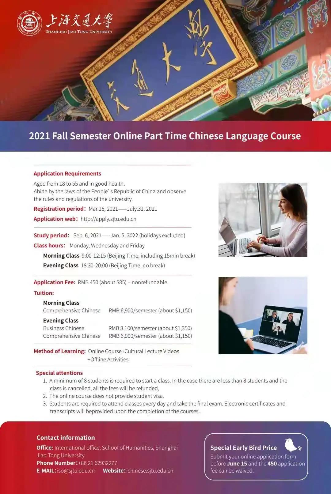 The application for 2021 Fall Semester Online Part Time Language Course has been started!