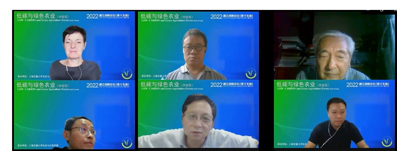 On the afternoon of September 17, 2022, the 2022 Pujiang Innovation Forum -- Low-carbon and Green Agriculture Forum ( Sub-forum ) was held online in the College of Agriculture and Biology, Shanghai Jiao Tong University. More than 500 scientific and technological personnel from Shanghai Jiao Tong University, East China Normal University, Fudan University, Shanghai Normal University, Shanghai Academy of Agricultural Sciences, Northeast Agricultural University, Zhejiang University, Zhejiang Agriculture and Forestry University, Ningxia Academy of Agriculture and Forestry Sciences and other universities, research institutes and enterprises attended the conference.