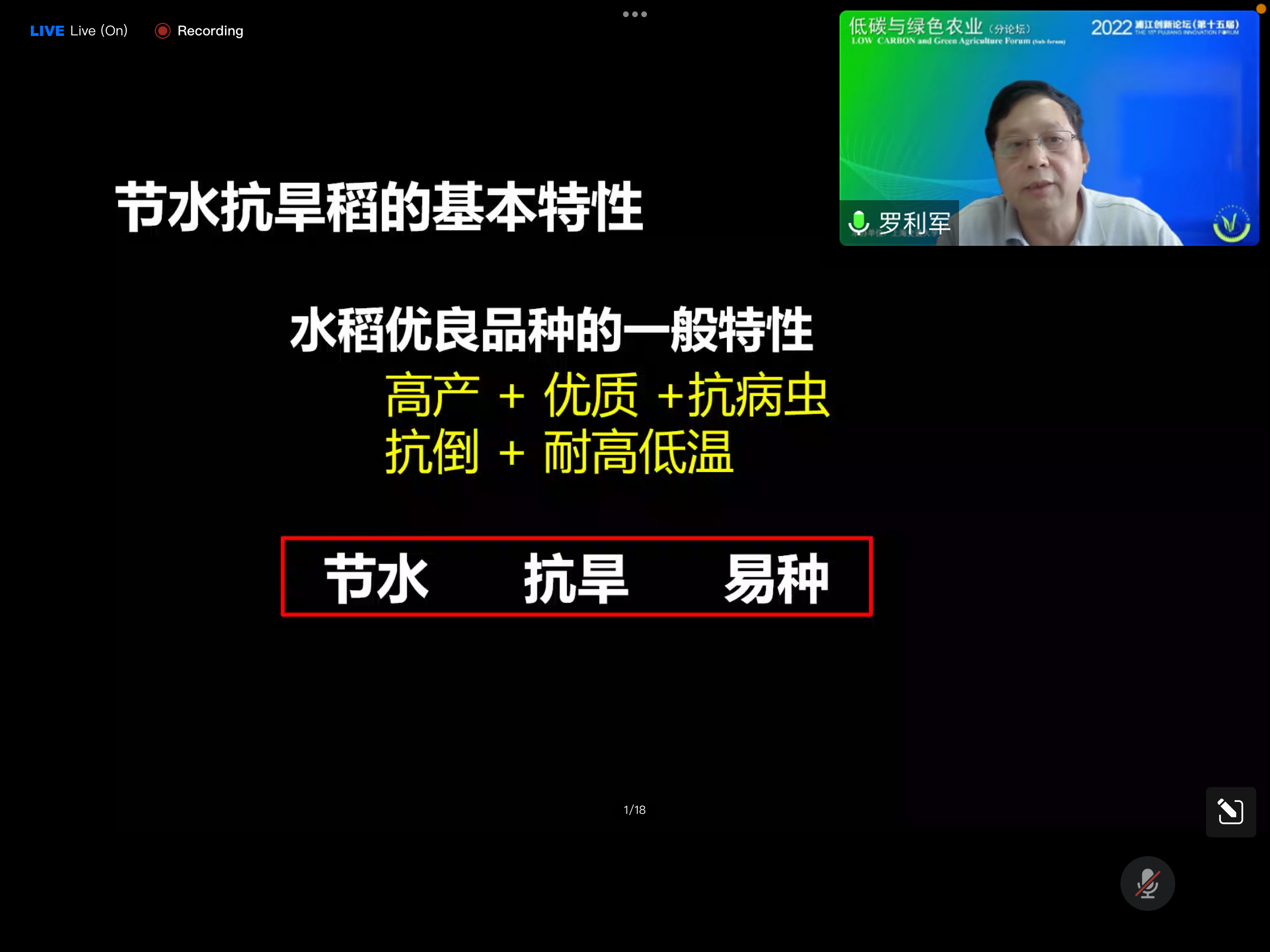 Shanghai municipal agricultural biological genetic center chief scientist LUO Lijun, a researcher at the report to achieve food security under the background of "carbon neutral blue revolution" water-saving drought-resistant rice are introduced to reduce rice cultivation cost and with the broad prospects of the corresponding carbon emissions, related work will greatly promote ensure that food production and reduce the pollution of agricultural goals.