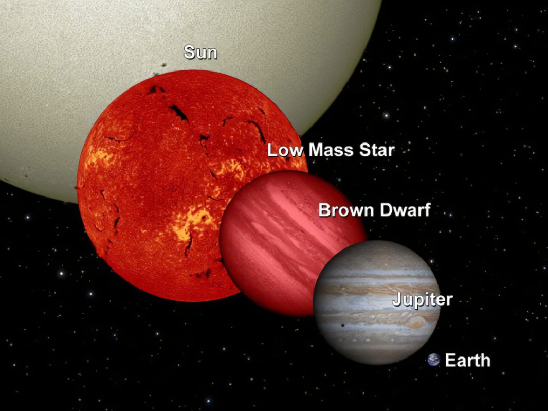 Everyone knows that stars are celestial bodies that emit light by themselves, while planets are celestial bodies that do not emit light by themselves. Lesser known, however, is a type of objects between planets and stars known as brown dwarfs. It is not like a star that can continuously produce visible light through hydrogen fusion, but the high temperature and high pressure in its core can ignite deuterium fusion to produce a certain amount of infrared light, so it is not like a planet that does not emit light at all. However, the deuterium fusion inside the brown dwarf can only last for 100 million years at most. As the thermal radiation continues to take away the energy, the surface of the brown dwarf is getting cooler and cooler, and its color is getting darker and darker, so it is called "brown dwarf". Since the gravity of brown dwarf is balanced by the electron degeneracy pressure, its radius would not increase with mass, but will remain at about one Jupiter radius.