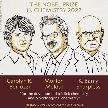 Scientists Carolyn R. Bertozzi, Morten Meldal and K. Barry Sharpless were awarded the Nobel Prize in Chemistry on Wednesday for the development of click chemistry and bioorthogonal chemistry. Barry Sharpless, 81, becomes only the fifth person in history to win a Nobel twice.