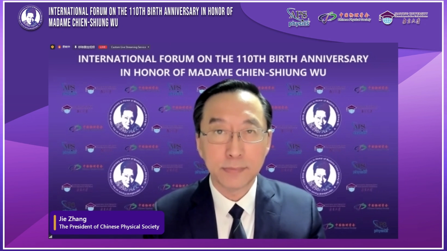 President Jie’s report is titled Chien-Shiung Wu - A Phenomenal Exemplar for Our Generation. He started his speech using the Chinese character of Xiang from Prof. Tsung-Dao Lee's memorial at Wu's commemoration service the year she passed away. Xiang both speaks to Wu's greatness and perfectly reveals how much we have missed Prof. Wu. Jie pointed out that early in Wu’s study of physics, she was mentored by the first generation of physicists in China. On behalf of the CPS, Jie paid tribute to these pioneers, Prof. Shih-Yuan Sze, Prof. Chung-Yao Chao, Prof. Gu Jinghui, Prof. Shi Ruwei, who are also CPS’s founding members.
