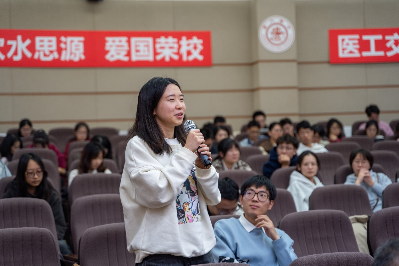 在交流环节,老师和同学们踊跃向院士提问,大家就如何在日常生活中保持健康的饮食,大学生如何让自己的饮食更健康等实际问题展开讨论,单杨院士耐心解答并给出了建议。