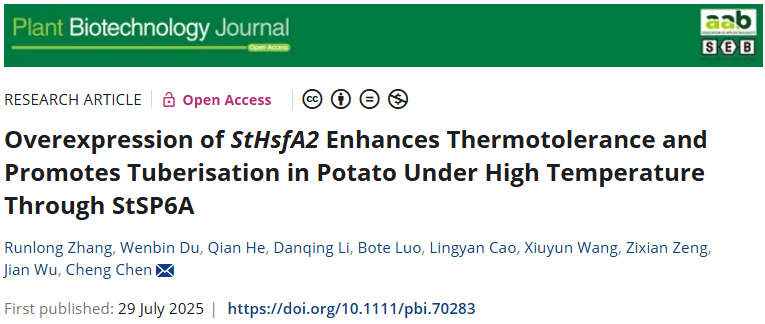 PBJ — 陈诚课题组揭示马铃薯StHsfA2基因参与的耐热调控分子机制