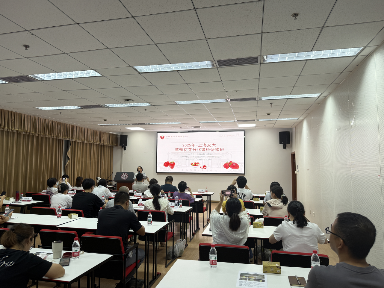 2025827日,由上海市园艺学会主办,taptap下载ios游戏承办,上海市农业技术推广服务中心协办的上海市2025-上海交大草莓花芽分化镜检研修班在taptap下载ios游戏顺利举行。本次培训会吸引了来自市农科院、市、区农技中心的科技人员,以及草莓种植企业、合作社和种植户代表等共计40余人参与。