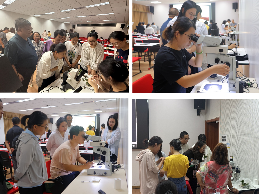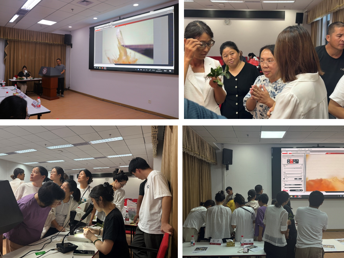 在实操环节,学员们分组进行镜检操作,连红莉及其团队成员巡回指导,耐心解答学员在显微镜使用、花芽判定等方面遇到的问题,确保了培训内容的落地与转化。