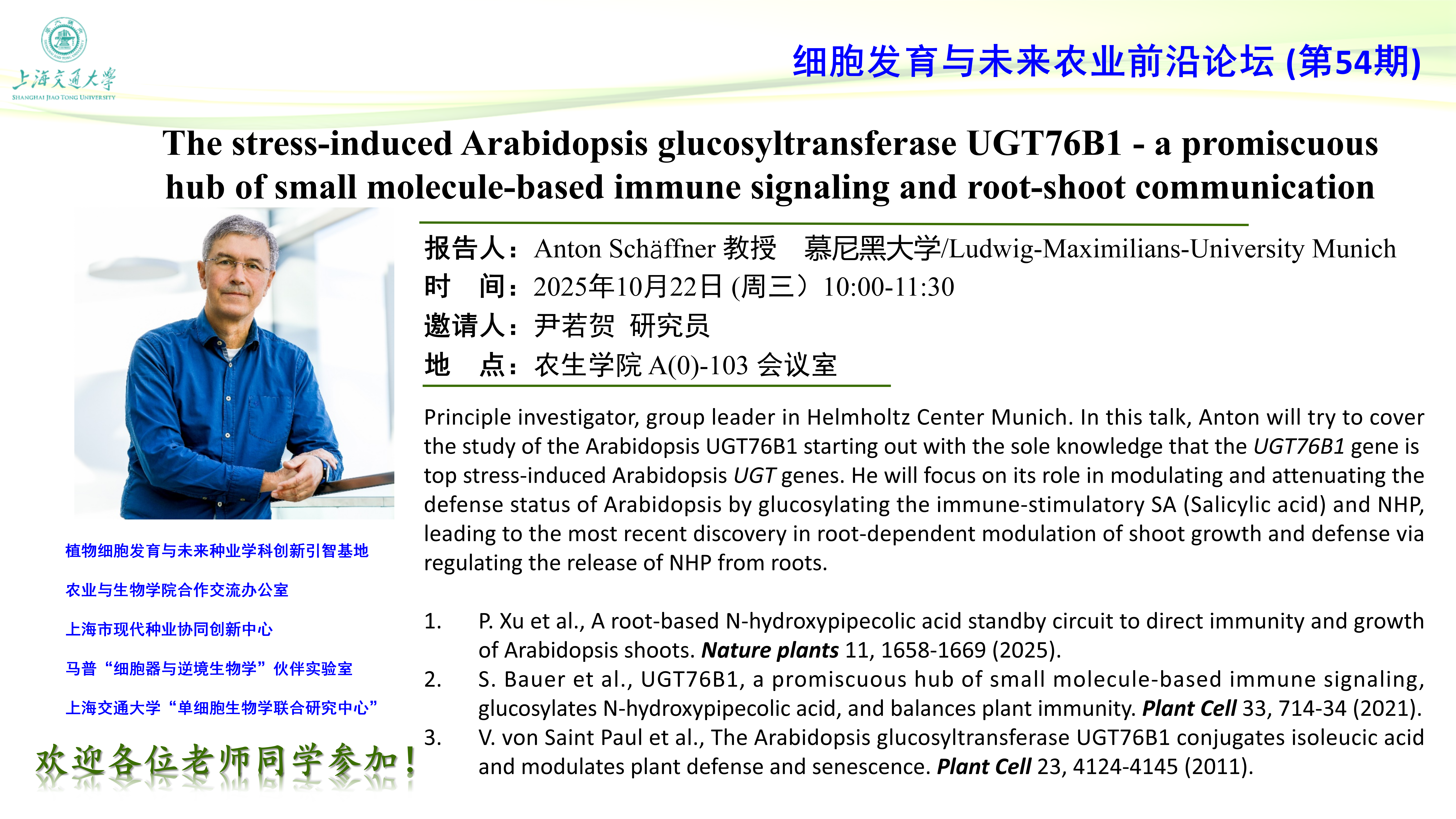 【第54期】The stress-induced Arabidopsis glucosyltransferase UGT76B1 - a promiscuous hub of small molecule-based immune signaling and root-shoot communication